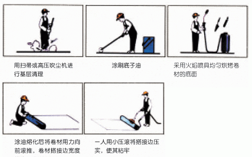 基層要求: 基層必須平整、清潔、干燥。含水率應(yīng)小于9%.然后用冷底子油均勻涂刷基層表面.待其干燥后方可施工。